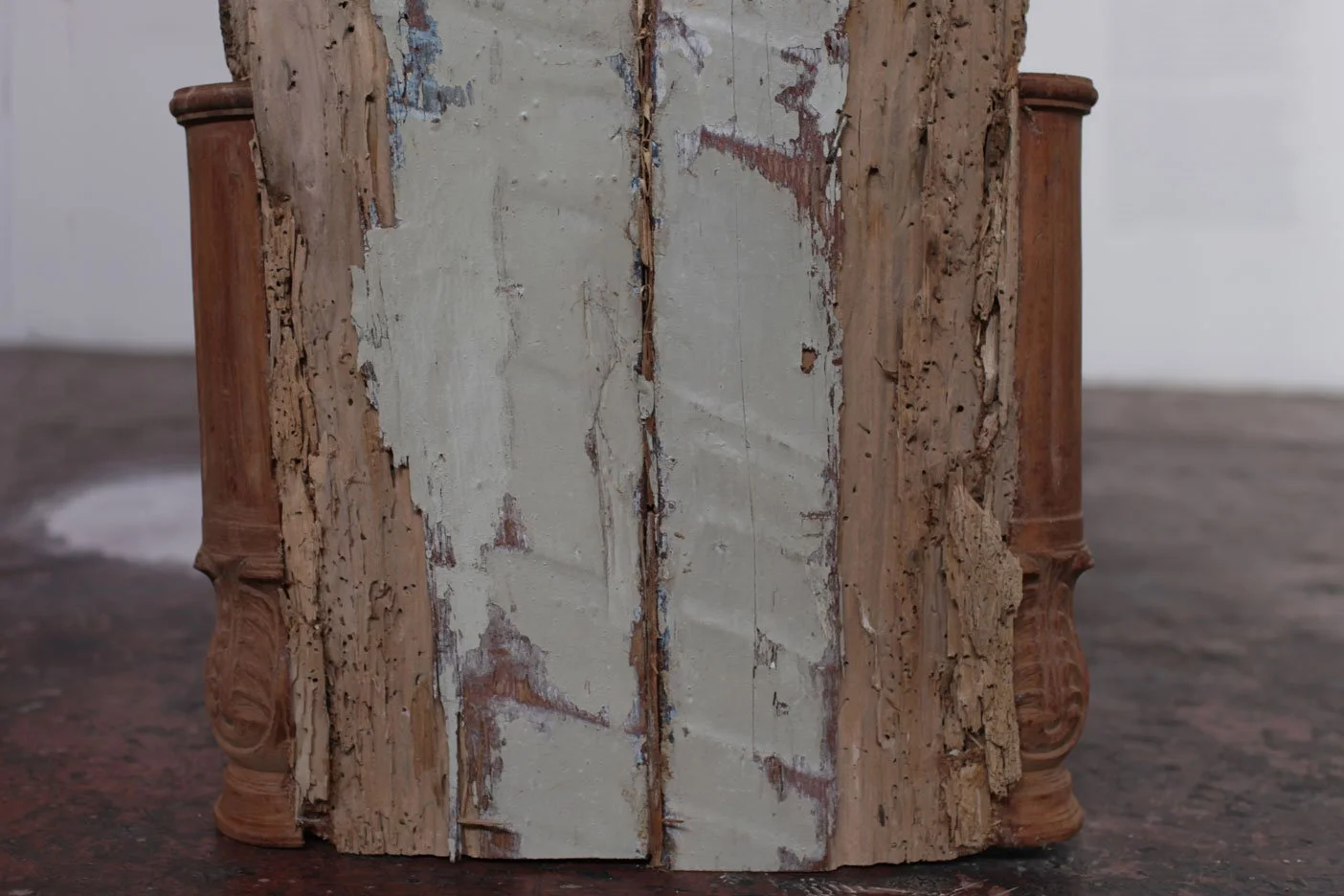 Monoliths and structure built from moth-eaten and reclaimed wood, CNC engraved. Volcanic stone powder. Video projection on marble dust.15-minute video loop on Google Maps and astronomy apps.